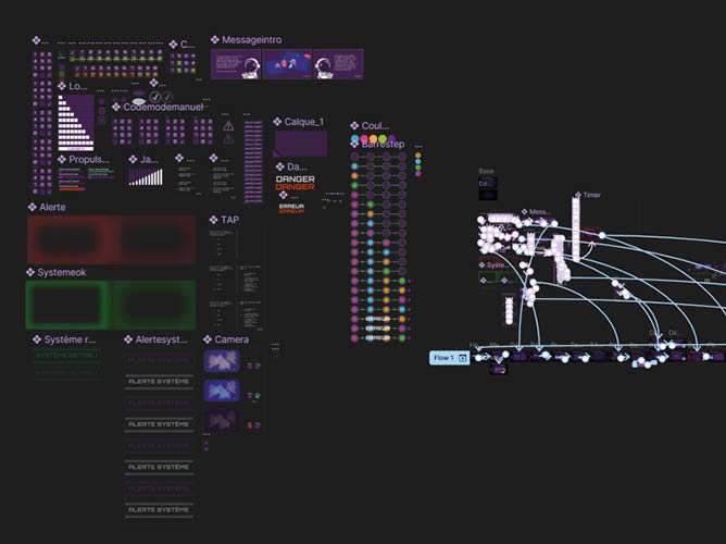 Game design | UI design Parcours d’exposition, familial, vulgarisation. Un projet pour le Lab71 à Dompierre-les-Ormes.Utilisé lors de la nuit des musées par des enfants entre 6 et 10 ans. Ce jeu met en avant l’exposition sur l’espace qui a eu lieu dans les espaces du Lab71. Créé à l’intention des familles qui viennent, l’objectif était de gamifier et dynamiser la visite en créant une histoire et en donnant une mission d’exploration aux enfants en incluant des informations de l’exposition et plus encore. J’ai effectué un travail de recherches sur l’espace en lui-même ainsi qu’un travail de vulgarisation pour rendre ceci accessible à des enfants à partir de 6 ans.Ce projet a été l’occasion d’explorer Figma et de comprendre le principe des composants créer diverses animations mais aussi de savoir adapter le jeu aux limites de l’application. J’ai eu l’opportunité de mettre alors en avant les informations de l’exposition par le biais d’un scénario afin de rendre ludique les connaissances apportées.